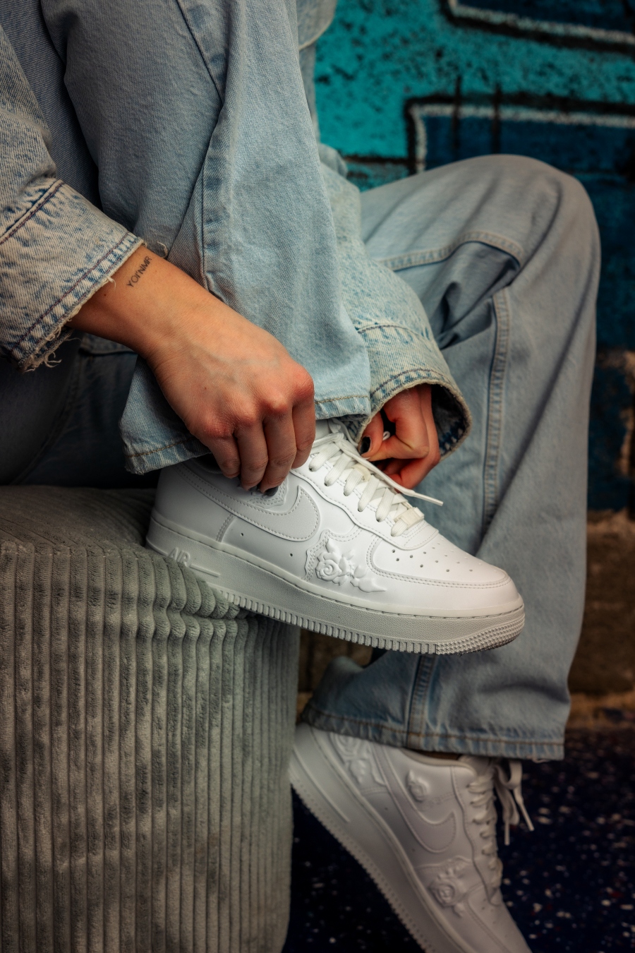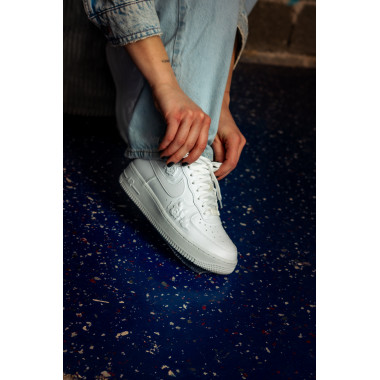 В началото си казах: „Още един чифт бели Air Force.“ После ги обух – и забелязах фините, релефни флорални мотиви. Малки детайли, които напълно променят усещането. Минималистични, но с характер. Класически чист силует, който се комбинира с всичко, но далеч не е банален.